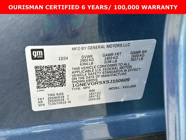 CARFAX One-Owner. Clean CARFAX. Certified. Lakeshore Blue Metallic 2025 Chevrolet Traverse LT 2LT AWD 8-Speed Automatic 2.5L DOHC Ourisman CPO Certified, AWD.
