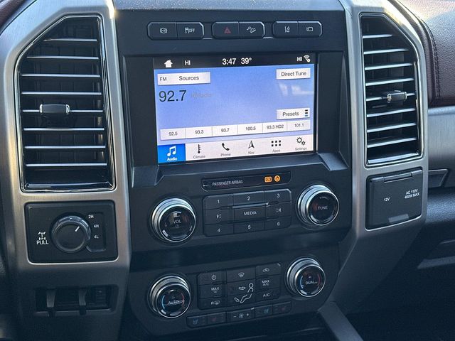 Diversified Certified Certified, 4WD, Diversified Certified Certified, 4WD, 10 Speakers, 110V/400W Outlet, 4-Wheel Disc Brakes, 5th Wheel/Gooseneck Hitch Prep Package, ABS brakes, Adaptive Cruise Control & Collision Warning, Adjustable pedals, Air Conditioning, Alloy wheels, AM/FM radio: SiriusXM, AppLink/Apple CarPlay and Android Auto, Auto-dimming Rear-View mirror, Automatic temperature control, Brake assist, Compass, Cruise control, Delay-off headlights, Driver door bin, Driver vanity mirror, Dual Extra Heavy-Duty Alternators (Total 377-Amps), Dual front impact airbags, Dual front side impact airbags, Electronic Stability Control, Electronic-Locking w/3.55 Axle Ratio, Emergency communication system: SYNC 3 911 Assist, Engine Block Heater, Exterior Parking Camera Rear, Flow-Through Console, Front anti-roll bar, Front Bucket Seats, Front Center Armrest, Front dual zone A/C, Front fog lights, Front reading lights, Fully automatic headlights, FX4 Off-Road Package, Gooseneck Hitch Kit (Pre-Installed), GVWR: 10,000 lb Payload Package, Heated door mirrors, Hill Descent Control, Illuminated entry, Intelligent Access w/Push-Button Start, Lane-Keeping Alert, Leather steering wheel, Low tire pressure warning, Off-Road Specifically Tuned Shock Absorbers, Order Code 703A, Outside temperature display, Overhead airbag, Overhead console, Panic alarm, Passenger door bin, Passenger vanity mirror, Platinum Ultimate Package, Power door mirrors, Power driver seat, Power passenger seat, Power steering, Power windows, Radio data system, Radio: B&O Sound System by Bang & Olufsen, Rapid-Heat Supplemental Cab Heater, Rear Inflatable Seat Belts, Rear Parking Sensors, Rear reading lights, Rear seat center armrest, Rear step bumper, Rear window defroster, Remote keyless entry, Security system, SiriusXM Radio, Snow Plow Prep Package, Split folding rear seat, Steering wheel mounted audio controls, SYNC 3 Communications & Entertainment System, Tachometer, Telescoping steering wheel, Tilt steering wheel, Traction control, Trip computer, Turn signal indicator mirrors, Twin Panel Power Moonroof, Ultimate Trailer Tow Camera System, Unique FX4 Off-Road Box Decal, Upfitter Switches (6), Variably intermittent wipers, CUSTOM LIGHTS FRON AND BACK BUMPERS, CUSTOM LOW PROFILE TIRES AND RIMS, CUSTOM WHEEL WELL LIGHTS, LIFT KIT.
