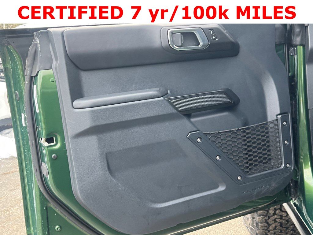 OURISMAN CERTIFIED 7 YEARS/ 100,000 MILES COVERAGE GIVES YOU THAT PEACE OF MIND, 1 OWNER CARFAX, CLEAN CARFAX, WELL MAINTAINED PER CARFAX, 4X4, TRACTION CONTROL, HEATED LEATHER SEATS, APPLE CARPLAY COMPATIBLE, ANDROID AUTO COMPATIBLE, REMOVEABLE HARD TOP, Bronco Badlands, 2.7L EcoBoost V6, 4WD, Green Metallic, 2-Door Intelligent Access w/Lock/Unlock, AM/FM radio: SiriusXM with 360L, Ambient Footwell Lighting, Connected Navigation, Dr & Pass Illuminated Sliding Visor Vanity Mirrors, Dual Smart Charging USB Ports, Dual-Zone Electronic Automatic Temperature Control, Equipment Group 332A Mid Package, Exterior Parking Camera Rear, Front Row Heated Seats, Hard Top Sound Deadening Headliner, Navigation System, Power Outlet - Back Side of Center Floor Console, Rear Parking Sensors, Rear-View Camera, Rear-Window Defroster & Washer, Shadow Black Painted Hard Top, SYNC 4, Wheels: 17" Carbonized Gray-Painted Aluminum. Green Metallic