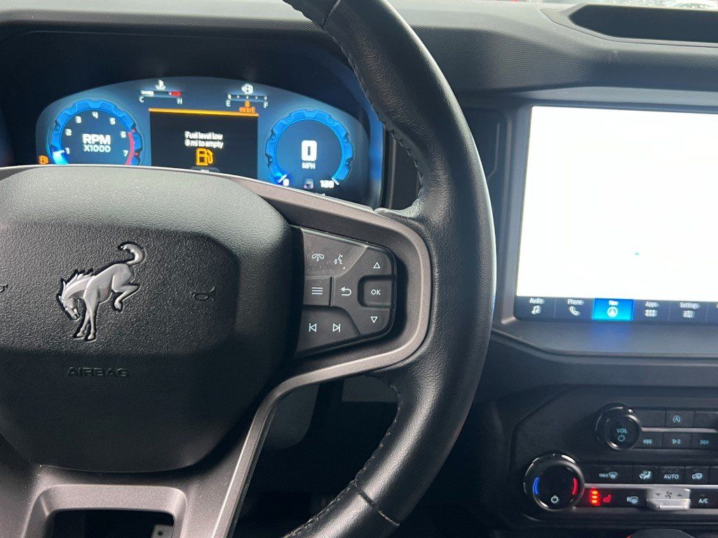CERTIFIED 7 YEARS/ 100,000 MILES, 4X4, TRACTION CONTROL, NAVIGATION SYSTEM, PREMIUM AUDIO SYSTEM W/ USB PORT, SIRIUS SATELLITE RADIO, LEATHER STEERING WHEEL W/ AUDIO & CRUISE CONTROL, SYNC 4, BACK-UP CAMERA, REVERSE SENSING SYSTEM, POWER WINDOWS, LOCKS & MIRRORS, DUAL HEATED POWER MIRRORS W/ SECURITY APPROACH LIGHTS, INTELLIGENT ACCESS W/ PUSH BUTTON START, REMOTE KEYLESS ENTRY W/ DOOR KEYPAD, BLIND SPOT MONITORING SYSTEM, DUAL DIGITAL AUTO CLIMATE CONTROL *STILL UNDER FACTORY WARRANTY*, LOCAL TRADE-IN, 1 OWNER AND NO ACCIDENTS AS PER CARFAX, GREAT GAS MILEAGE, VERY LOW MILES,, Bronco Big Bend, 2.3L EcoBoost I-4, 10-Speed Automatic, 4WD, Shadow Black, Dark Gray W/Black Onyx Cloth, 2-Door Intelligent Access w/Lock/Unlock, 4.46 Axle Ratio, 7 Speakers, AM/FM radio: SiriusXM with 360L, Ambient Footwell Lighting, Auto High-Beam Headlamps, Auto High-beam Headlights, Carbonized Gray Molded-In-Color Hard Top, Connected Navigation, Dr & Pass Illuminated Sliding Visor Vanity Mirrors, Dual Smart Charging USB Ports, Equipment Group 222A Mid Package, Front Row Heated Seats, Internet access capable: FordPass Connect, Lane-Keeping System, Power Outlet - Back Side of Center Floor Console, Pre-Collision Assist w/Automatic Emergency Braking, Rear-Window Defroster & Washer, Tachometer, Telescoping steering wheel, Tilt steering wheel, Wheels: 17" Carbonized Gray-Painted Aluminum. Shadow Black