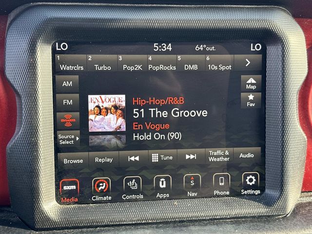 FCA US LLC Certified Pre-Owned Certified, FCA US LLC Certified Pre-Owned Certified, 4-Wheel Disc Brakes, 4.10 Rear Axle Ratio, 9 Speakers, ABS brakes, Air Conditioning, Alloy wheels, AM/FM radio: SiriusXM, Apple CarPlay/Android Auto, Auto-dimming Rear-View mirror, Automatic temperature control, Auxiliary Battery, Black 3-Piece Hard Top, Brake assist, Cold Weather Group, Compass, Cruise control, Delay-off headlights, Driver door bin, Driver vanity mirror, Dual front impact airbags, Dual front side impact airbags, Electronic Stability Control, Emergency communication system: SiriusXM Guardian, Engine Oil Cooler, Freedom Panel Storage Bag, Front anti-roll bar, Front Bucket Seats, Front Center Armrest w/Storage, Front dual zone A/C, Front fog lights, Front License Plate Bracket, Front reading lights, Fully automatic headlights, Garage door transmitter, Heated door mirrors, Heated Front Seats, Heated Steering Wheel, Illuminated entry, Integrated roll-over protection, Leather steering wheel, Low tire pressure warning, MOPAR All-Weather Floor Mats, Navigation System, No Soft Top, Non-Locking Fuel Cap w/o Discriminator, Occupant sensing airbag, Outside temperature display, Panic alarm, ParkView Rear Back-Up Camera, Passenger door bin, Passenger vanity mirror, Performance Suspension, Power door mirrors, Power steering, Power windows, Premium Cloth Low-Back Bucket Seats, Quick Order Package 22R, Radio data system, Radio: Uconnect 4C Nav w/8.4" Display, Rear anti-roll bar, Rear reading lights, Rear Window Defroster, Rear Window Wiper/Washer, Remote keyless entry, Remote Start System, Security system, Start-Stop Dual Battery System, Steering wheel mounted audio controls, Tachometer, Telescoping steering wheel, Tilt steering wheel, Traction control, Trip computer, Variably intermittent wipers, Voltmeter, Wheels: 17" x 7.5" Machined w/Black Pockets.