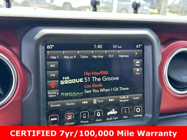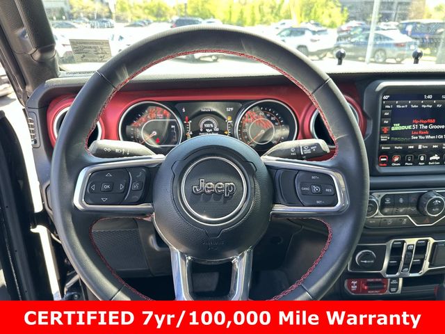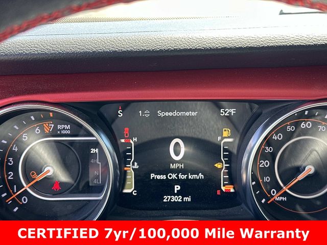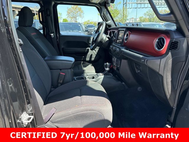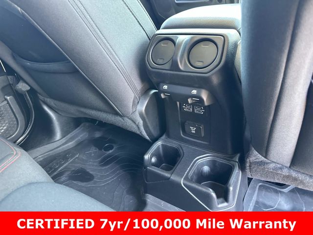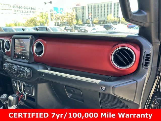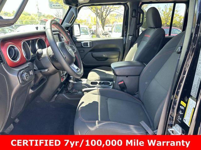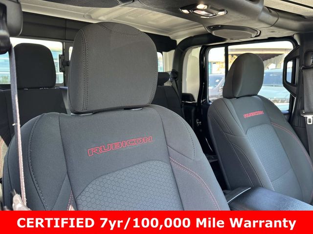 FCA US LLC Certified Pre-Owned Certified, FCA US LLC Certified Pre-Owned Certified, 240 Amp Alternator, 4-Wheel Disc Brakes, 4.10 Rear Axle Ratio, 9 Speakers, 97 MPH Vehicle Max Speed Calibration, ABS brakes, Air Conditioning, Alloy wheels, AM/FM radio: SiriusXM, Apple CarPlay/Android Auto, Auto-dimming Rear-View mirror, Automatic temperature control, Black 3-Piece Hard Top, Brake assist, Class IV Receiver Hitch, Cold Weather Group, Compass, Cruise control, Daytime Running Lamps LED Accents, Delay-off headlights, Driver door bin, Driver vanity mirror, Dual front impact airbags, Dual front side impact airbags, Electronic Stability Control, Emergency communication system, Freedom Panel Storage Bag, Front anti-roll bar, Front Bucket Seats, Front Center Armrest w/Storage, Front dual zone A/C, Front fog lights, Front LED Fog Lamps, Front License Plate Bracket, Front reading lights, Fully automatic headlights, Garage door transmitter, Heated door mirrors, Heated Front Seats, Heated Steering Wheel, Heavy-Duty Engine Cooling, Illuminated entry, Integrated roll-over protection, LED Lighting Group, LED Park Turn Lamps, LED Premium Reflector Headlamps, LED Taillamps, Low tire pressure warning, MOPAR All-Weather Slush Mats, Navigation System, Occupant sensing airbag, Outside temperature display, Panic alarm, ParkView Rear Back-Up Camera, Passenger door bin, Passenger vanity mirror, Performance Suspension, Power door mirrors, Power steering, Power windows, Premium Cloth Low-Back Bucket Seats, Quick Order Package 24R Rubicon, Radio data system, Radio: Uconnect 4C Nav w/8.4" Display, Rear anti-roll bar, Rear reading lights, Rear Sliding Window, Rear Window Defroster, Remote keyless entry, Security system, Split folding rear seat, Steering wheel mounted audio controls, Tachometer, Telescoping steering wheel, Tilt steering wheel, Traction control, Trailer Hitch Zoom, Trailer Tow Package, Trip computer, Variably intermittent wipers, Voltmeter, Wheels: 17" x 7.5" Granite Crystal Aluminum, Wheels: 17" x 7.5" Machined/Painted Black.