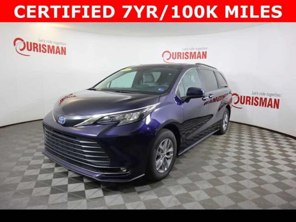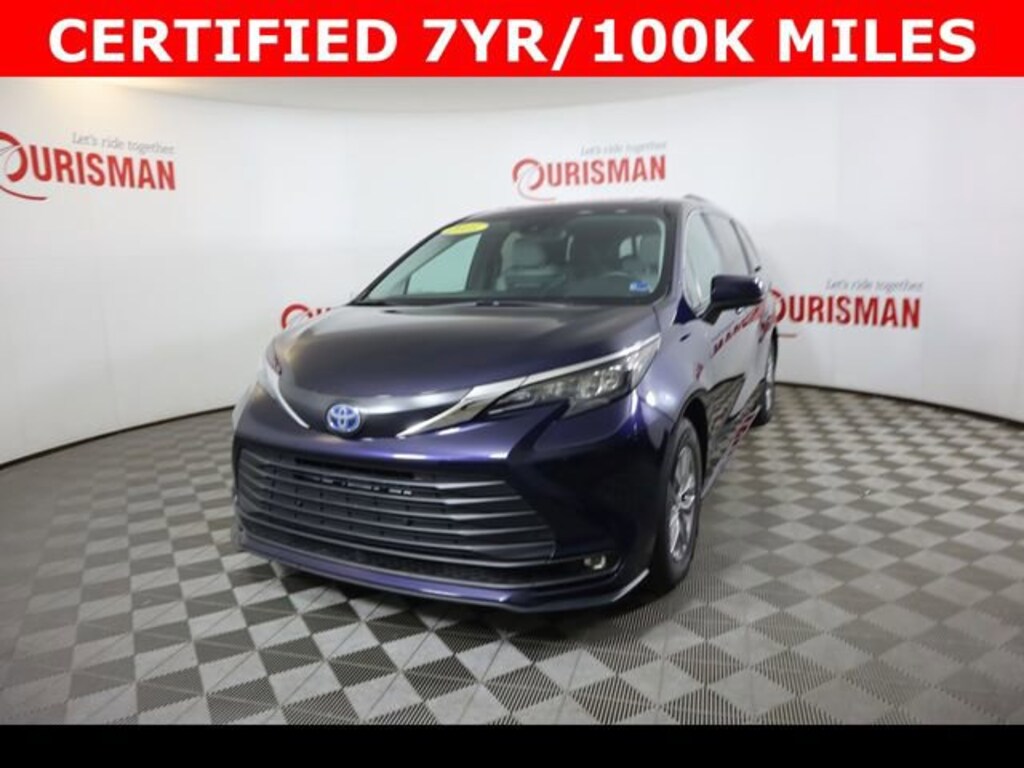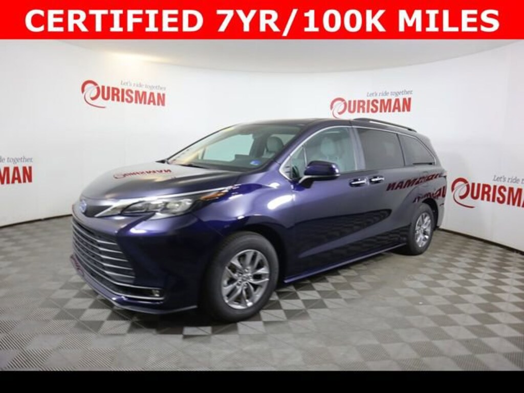 Certified. Blue 2025 Toyota Sienna XLE 7 Passenger FWD CVT 2.5L I4 Hybrid w/VVT-iE DOHC 16V CARFAX One-Owner. Clean CARFAX. CERTIFIED 7 YEAR/ 100,000 MILE WARRANTY.