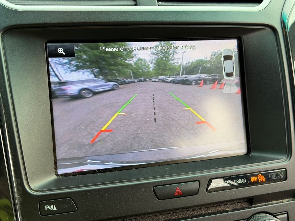 It comes equipped with a panoramic sunroof, navigation system, SiriusXM satellite radio, USB ports, Bluetooth hands-free phone connectivity, a back-up camera, and reverse sensing system. Convenience features include power windows, locks, and mirrors, power seats, heated leather seats, a leather-wrapped steering wheel with audio and cruise control, intelligent access with push-button start, and speed control.