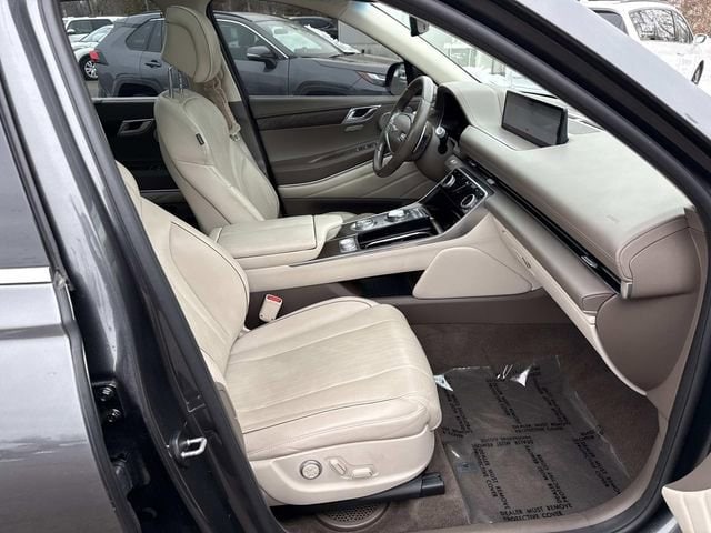Performance is delivered by a punchy 300-horsepower turbocharged engine paired with standard All-Wheel Drive and an electronically controlled suspension that uses a camera to read the road ahead and adjust for bumps in real time. Despite its size and power, the GV80 remains practical with an EPA-estimated 24 highway MPG (20 city/22 combined). Safety is world-class, featuring a 10-inch Head-Up Display (HUD), a Surround View Monitor for a 360-degree parking view, and a Blind-Spot View Monitor that projects a live camera feed of your blind spot directly into the digital gauge cluster when you signal
