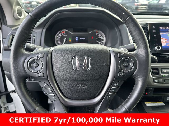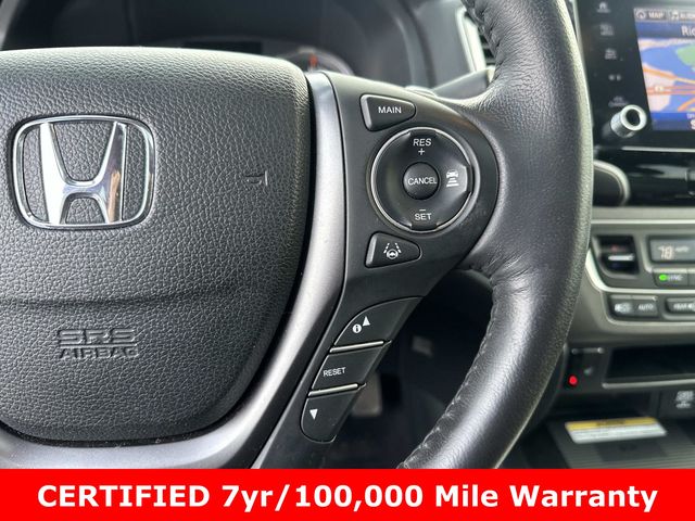 Black w/Leather Seat Trim, Black w/Leather Seat Trim, 4-Wheel Disc Brakes, 4.33 Axle Ratio, 8 Speakers, ABS brakes, Air Conditioning, Alloy wheels, AM/FM radio: SiriusXM, Apple CarPlay/Android Auto, Auto High-beam Headlights, Auto-dimming Rear-View mirror, Automatic temperature control, Blind Spot Information (BSI) System warning, Bluetooth® Hands-Free Link, Brake assist, Bumpers: body-color, Compass, Cruise control, Delay-off headlights, Driver door bin, Driver vanity mirror, Driver's Seat Mounted Armrest, Dual front impact airbags, Dual front side impact airbags, Electronic Stability Control, Exterior Parking Camera Rear, Four wheel independent suspension, Front anti-roll bar, Front Bucket Seats, Front dual zone A/C, Front fog lights, Front reading lights, Fully automatic headlights, Garage door transmitter: HomeLink, Heated door mirrors, Heated Front Bucket Seats, Heated front seats, Heated steering wheel, Honda Satellite-Linked Navigation System, Illuminated entry, Leather Seat Trim, Low tire pressure warning, Memory seat, Navigation system: Honda Satellite-Linked Navigation System, Occupant sensing airbag, Outside temperature display, Overhead airbag, Overhead console, Panic alarm, Passenger door bin, Passenger seat mounted armrest, Passenger vanity mirror, Power door mirrors, Power driver seat, Power moonroof, Power passenger seat, Power steering, Power windows, Radio data system, Radio: 540-Watt Premium Audio System w/8 Speakers, Rear air conditioning, Rear anti-roll bar, Rear reading lights, Rear seat center armrest, Rear step bumper, Rear window defroster, Remote keyless entry, Security system, SiriusXM, Speed-sensing steering, Split folding rear seat, Steering wheel mounted audio controls, Tachometer, Telescoping steering wheel, Tilt steering wheel, Traction control, Trip computer, Turn signal indicator mirrors, Variably intermittent wipers, Wheels: 18" Exclusive Pewter Gray Alloy.