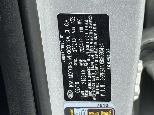 2019 Silky Silver Kia Forte LXS 4D Sedan FWD 2.0L I4 DOHC Dual CVVT CVT