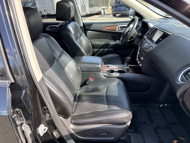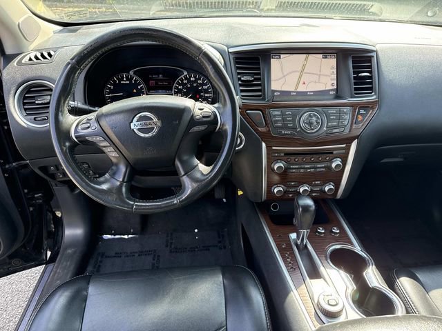The 2017 Nissan Pathfinder Platinum is a fully loaded three-row SUV that delivers strong V6 performance, upscale comfort, and family-friendly versatility. Powered by a 3.5L V6 engine producing 284 horsepower, it offers smooth acceleration and confident capability, paired with a CVT transmission. Whether front-wheel or all-wheel drive, it delivers solid efficiency for its class at around 20 MPG city / 27 MPG highway (23 MPG combined), while also offering an impressive 6,000 lb towing capacity perfect for road trips, boats, or trailers. With seating for seven across three rows, the Pathfinder provides easy access to the third row and a comfortable ride for the whole family.