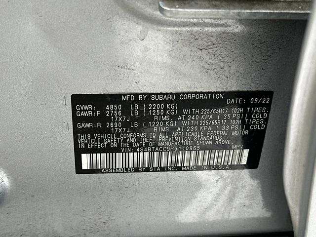 3.90 Axle Ratio, 4-Wheel Disc Brakes, 6 Speakers, ABS brakes, Air Conditioning, All-Weather Floor Liners, Alloy wheels, AM/FM radio: SiriusXM, Auto High-beam Headlights, Automatic temperature control, Brake assist, Bumpers: body-color, Cargo Net, Cloth Upholstery, Cruise control, Driver door bin, Driver vanity mirror, Dual front impact airbags, Dual front side impact airbags, Electronic Stability Control, Emergency communication system: STARLINK Safety Plus (3-year free trial), Exterior Parking Camera Rear, Four wheel independent suspension, Front anti-roll bar, Front Bucket Seats, Front Center Armrest w/Storage, Front dual zone A/C, Front fog lights, Front reading lights, Fully automatic headlights, Heated door mirrors, Heated Front Bucket Seats, Heated front seats, Illuminated entry, Knee airbag, Leather Shift Knob, Leather steering wheel, Low tire pressure warning, Occupant sensing airbag, Outside temperature display, Overhead airbag, Overhead console, Panic alarm, Passenger door bin, Passenger vanity mirror, Power door mirrors, Power driver seat, Power steering, Power windows, Radio: Subaru STARLINK 11.6" Multimedia Plus Sys, Rear anti-roll bar, Rear Bumper Cover, Rear Seat Back Protector, Rear seat center armrest, Rear window defroster, Rear window wiper, Remote keyless entry, Roof rack, Security system, Speed-sensing steering, Split folding rear seat, Spoiler, Standard Model, Steering wheel mounted audio controls, Steering Wheel Paddle Shift Control Switches, Tachometer, Telescoping steering wheel, Tilt steering wheel, Traction control, Trip computer, Turn signal indicator mirrors, Variably intermittent wipers, Wheels: 17" x 7J Black Aluminum Alloy, Windshield Sunshade.