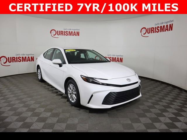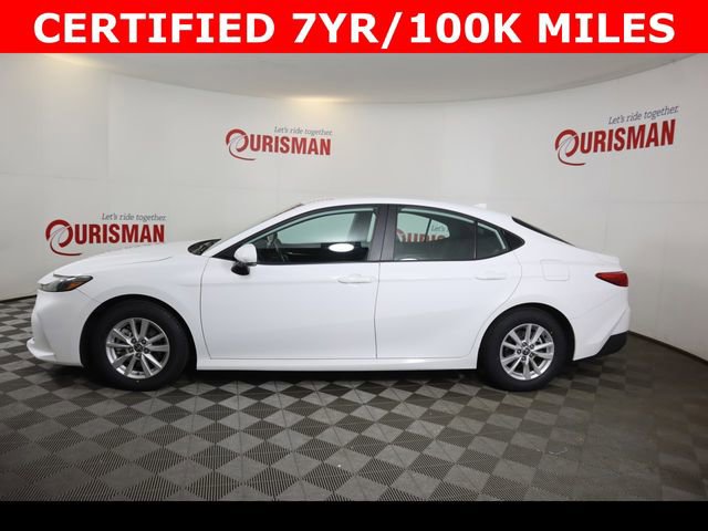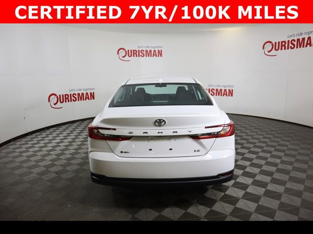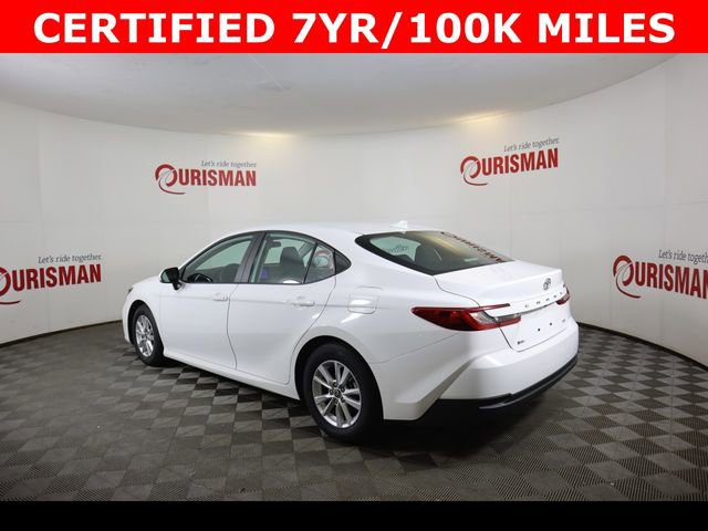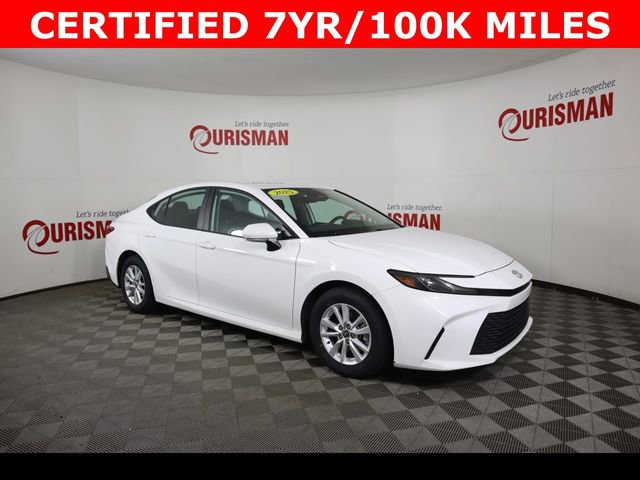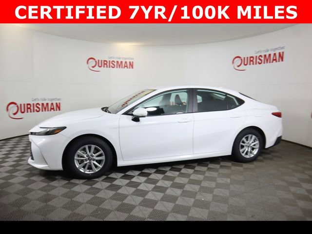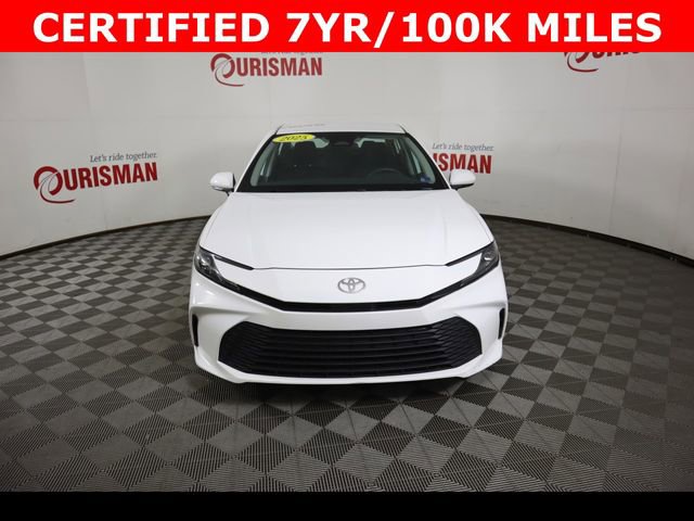 Certified. White 2025 Toyota Camry LE FWD eCVT 2.5L 4-Cylinder 16V DOHC CARFAX One-Owner. Clean CARFAX. CERTIFIED 7 YEAR/ 100,000 MILE WARRANTY.